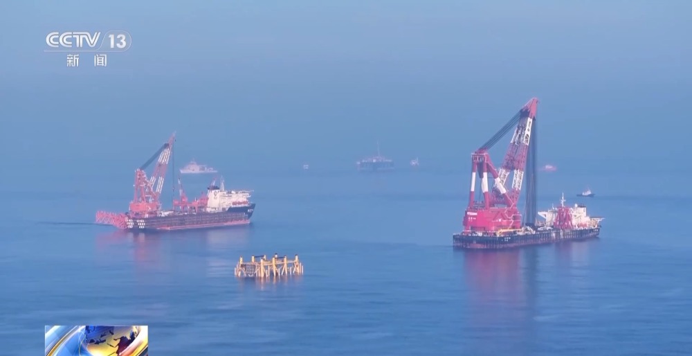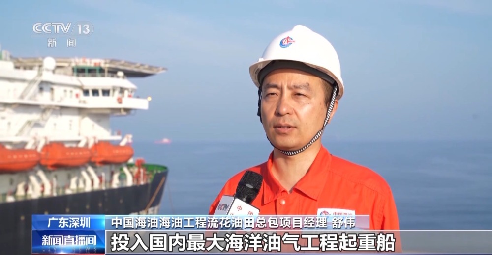 總臺央視記者 古峻嶺:在“?;枴焙I习惭b作業(yè)現(xiàn)場,經(jīng)過16個小時的連續(xù)施工作業(yè),“海基二號”已經(jīng)由昨天滑移下水時的橫向漂浮狀態(tài),變?yōu)橹绷顟B(tài),它高達338米的龐大身軀,已經(jīng)穩(wěn)穩(wěn)站立在了324米深的海床之上,僅有10余米的部分露出水面,接下來工作人員將以它為基礎(chǔ),建設(shè)安裝一座萬噸級海上鉆井平臺。未來它將在臺風和惡劣海況的輪番考驗下,在這里穩(wěn)穩(wěn)矗立30年,源源不斷地將深海油氣輸送到千家萬戶,為保障國家能源安全提供堅強支撐。