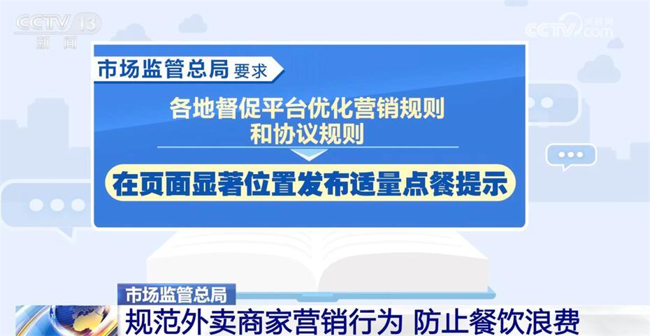 市場監(jiān)管總局要求各地督促平臺優(yōu)化營銷規(guī)則和協(xié)議規(guī)則,在頁面顯著位置發(fā)布適量點(diǎn)餐提示;鼓勵平臺健全激勵機(jī)制,推動商家開發(fā)、提供、推廣小份餐品,合理設(shè)置餐品起送價格,優(yōu)化滿減湊單機(jī)制,不將主食納入滿減優(yōu)惠展示范圍,鼓勵使用食安封簽。線上線下、同頻同步開展防止餐飲浪費(fèi)與食品安全監(jiān)督檢查,持續(xù)開展“隨機(jī)查餐廳”行動。對造成明顯浪費(fèi)、嚴(yán)重浪費(fèi)且拒不改正的,依法嚴(yán)厲處罰并公開曝光。