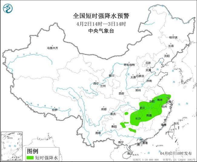 預計4月2日14時至3日14時,安徽南部、江蘇南部、上海、湖北東南部、湖南中東部、江西中北部、浙江西部、廣西東北部等地的部分地區(qū)將有8-10級雷暴大風或冰雹天氣,局地風力可達11級以上,冰雹直徑可達2厘米;安徽南部、江蘇南部、上海、湖北東部、湖南中東部、江西中北部、浙江西部、貴州東南部、廣西東北部等地的部分地區(qū)將有短時強降水天氣,最大小時雨量30-50毫米,局地可達70毫米以上。