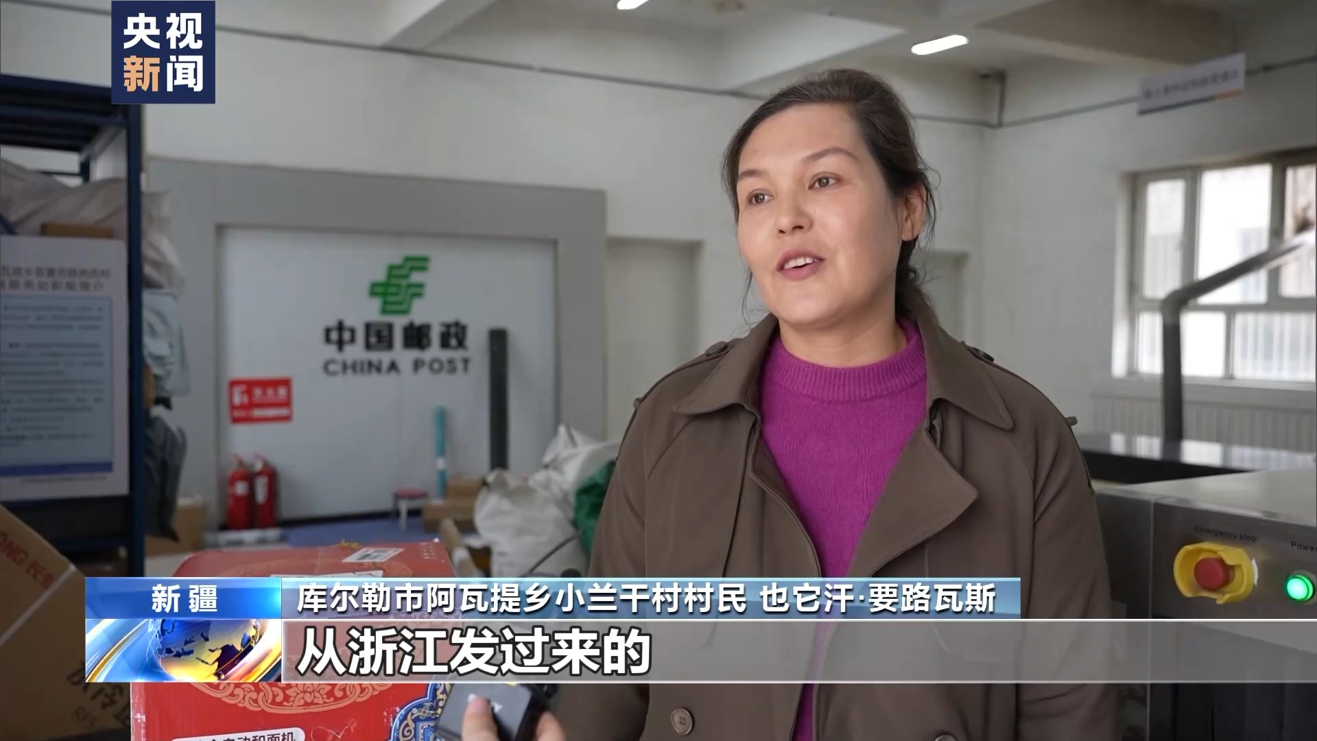 庫爾勒市阿瓦提鄉(xiāng)小蘭干村村民 也它汗·要路瓦斯:我在網(wǎng)上買了一個和面機(jī),從浙江發(fā)過來的。過去拿快遞只能到鄉(xiāng)里,現(xiàn)在直接到家門口,當(dāng)天我就拿到手。