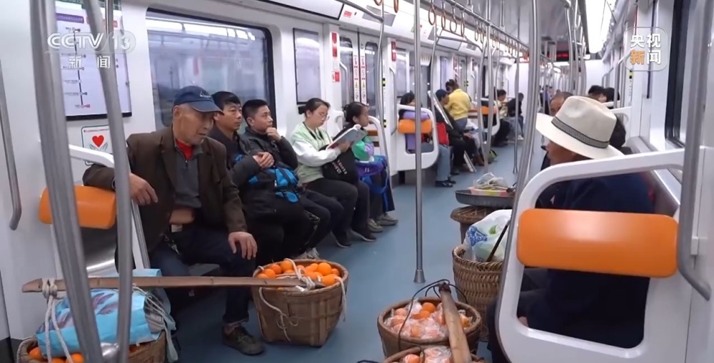 石船鎮(zhèn)位于重慶市渝北區(qū)東部,離市區(qū)路程有40多公里。2022年6月,重慶軌道交通4號(hào)線(xiàn)石船站開(kāi)通運(yùn)營(yíng)后,石船站就設(shè)在不到兩公里外的村口?,F(xiàn)在兩位老人步行最多半小時(shí),就可以到達(dá)地鐵站。同時(shí),按照當(dāng)?shù)氐恼撸貞c市行政區(qū)域內(nèi),年滿(mǎn)65周歲的老人,可以免費(fèi)乘坐地鐵。像馮忠福夫妻一樣,搭乘地鐵去市區(qū)賣(mài)菜賣(mài)水果的村民開(kāi)始多了起來(lái),慢慢地,4號(hào)線(xiàn)被大家親切稱(chēng)為“背簍專(zhuān)線(xiàn)”。