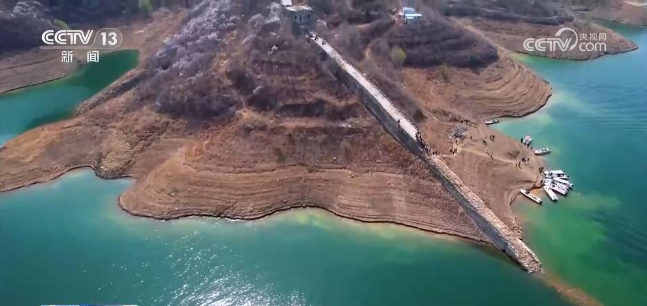 您現(xiàn)在看到的是位于河北省寬城滿族自治縣境內(nèi)的潘家口水庫(kù)“水下長(zhǎng)城”。長(zhǎng)城內(nèi)外,漫山遍野的山杏花悄然綻放,在春風(fēng)中爭(zhēng)芳斗艷,時(shí)而飄來(lái)陣陣花香。春日里,盛開(kāi)的杏花、碧綠的湖水與巍峨的長(zhǎng)城交相輝映,形成了剛?cè)嶂赖耐昝廊诤希瑯?gòu)成一幅絕美的畫(huà)卷,吸引了眾多游客登上長(zhǎng)城前來(lái)賞花踏青。