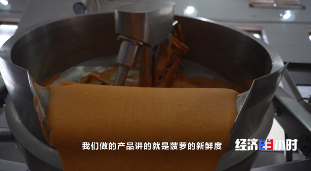 近幾年,徐聞縣也下大力氣促進菠蘿的就地轉(zhuǎn)化增值。來自廈門的一家企業(yè)在9年前就看好徐聞的產(chǎn)地優(yōu)勢,在曲界鎮(zhèn)建了一家加工廠生產(chǎn)鳳梨餡料,2023年,在政策和市場的雙重驅(qū)動下,企業(yè)又新建了一家工廠,剛剛投產(chǎn)不到兩個月就已經(jīng)訂單爆滿。