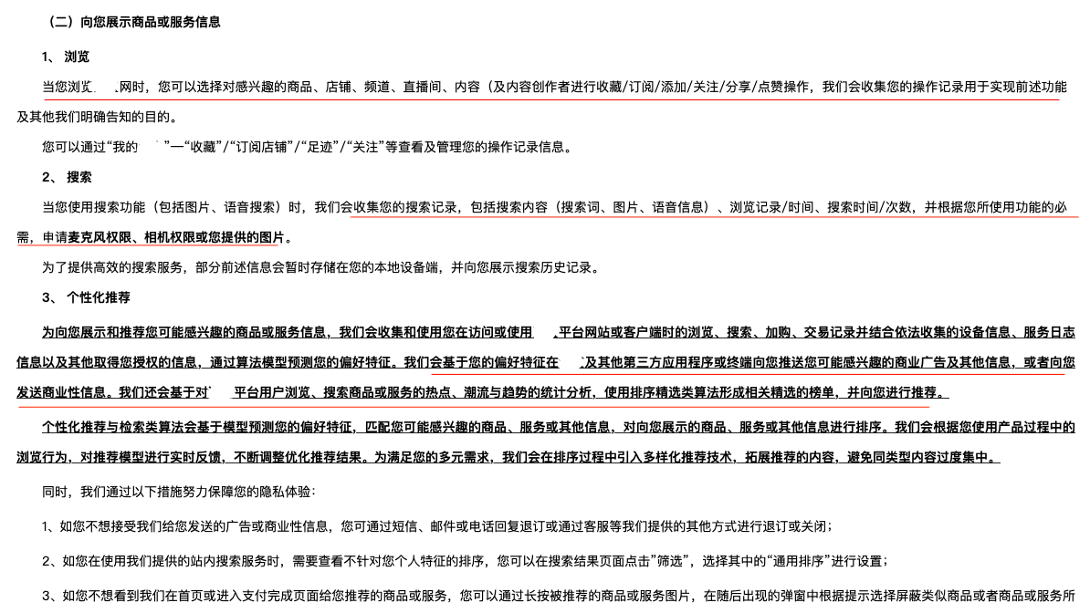 某購物平臺(tái)基本功能隱私政策顯示,搜集瀏覽、搜索等相關(guān)信息(央廣網(wǎng)發(fā) 某購物網(wǎng)站截圖)