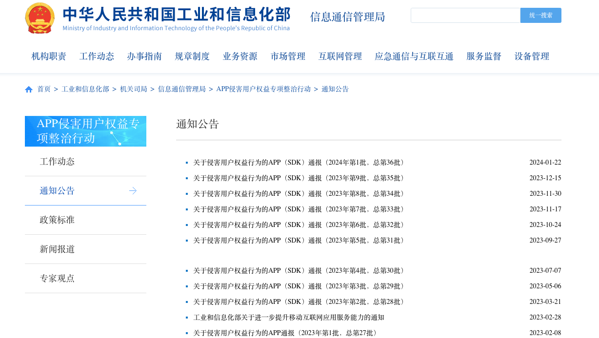 工信部發(fā)布關(guān)于侵害用戶權(quán)益行為的App(SDK)通報(bào)(央廣網(wǎng)發(fā) 工信部截圖)