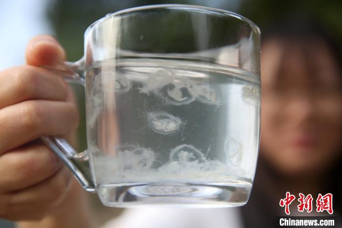 工作人員從水庫(kù)打撈出來(lái)的桃花水母?!√m自濤 攝