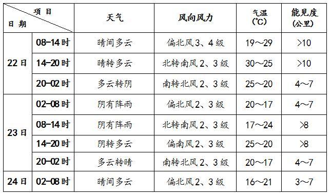 預(yù)計24-28日期間,大部分時間本市天氣為晴到多云。受弱冷空氣影響,25日有3、4級偏北風(fēng)。該期間氣溫較為平穩(wěn),白天最高氣溫28~30℃,夜間最低氣溫14~16℃。