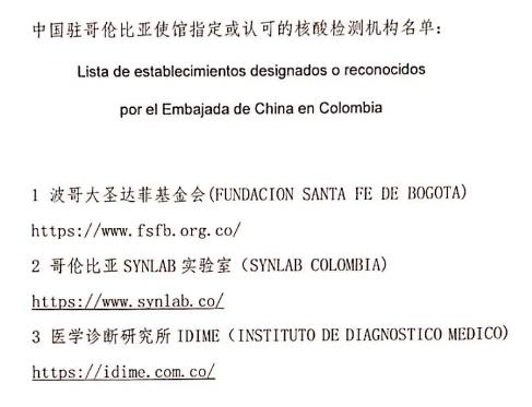 駐哥倫比亞使館提醒經(jīng)有關(guān)國家赴華乘客做好核酸檢測(cè)