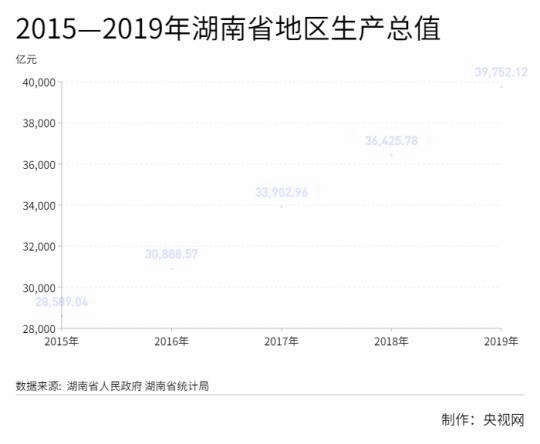 2019年,湖南地區(qū)生產(chǎn)總值接近4萬億元,達(dá)39752.12億元,按不變價(jià)格計(jì)算,比上年增長7.6%,符合7.5%—8%的預(yù)期目標(biāo)。