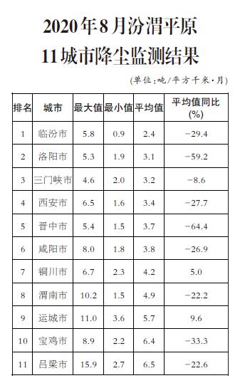生態(tài)環(huán)境部公布8月京津冀大氣污染傳輸通道 “2+26”城市和汾渭平原11城市降塵監(jiān)測結果