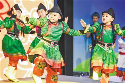 6月23日,“友誼·和平·年輕的使者”中俄蒙青少年內(nèi)蒙古旅游夏令營在內(nèi)蒙古自治區(qū)烏蘭察布市開營,來自中俄蒙三國200余名“小使者”共同開啟夢(mèng)幻般的草原之旅。開營儀式現(xiàn)場,來自中國、俄羅斯和蒙古國的孩子們帶來了芭蕾舞、蒙古舞、布里亞特民族舞等精彩演出,贏得現(xiàn)場陣陣掌聲。圖為來自中國的小朋友表演民族舞蹈。