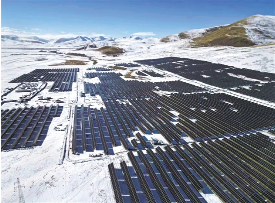 海拔4750米,雪山與草原之間,數(shù)以千計的光伏板在眼前列陣,蔚為壯觀。浙能集團投資2.65億元的50兆瓦光伏儲能項目建設(shè)即將收官?!斑@是嘉黎第一座光伏電站,這里光照資源豐富,發(fā)電小時數(shù)是浙江的近兩倍?!表椖控?fù)責(zé)人沈孔成說。
