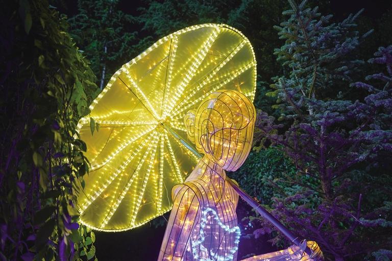 走進(jìn)燈會(huì)現(xiàn)場(chǎng),仿佛置身于一個(gè)夢(mèng)幻般的世界,各式各樣的花燈錯(cuò)落有致地分布在公園各個(gè)角落,令人目不暇接。宗角祿康公園的走廊里、草坪上,一盞盞精美的燈組在夜色的映襯下顯得更加璀璨奪目,展示出江南煙雨、小橋流水、青磚黛瓦、梅瓶明珠、桃花仙鶴、油傘折扇、上元燈彩等富有江蘇特色的美景雅韻,讓人似乎來(lái)到江南水鄉(xiāng),親身感受那一份寧?kù)o與美好。當(dāng)然,此次燈會(huì)最引人矚目的便是“蘇拉一家親”大型燈組,運(yùn)用拉薩經(jīng)典配色搭建飄逸的彩帶雙翼,再搭配拉薩的吉祥物牦牛和江蘇的吉祥物麋鹿,充分表達(dá)了“蘇拉一家親,攜手向未來(lái)”的寓意。
