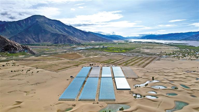 國家農業(yè)產(chǎn)業(yè)化示范企業(yè)——西藏綠之源現(xiàn)代農業(yè)科技股份有限公司二期項目,如同一片“綠洲”鑲嵌在沙丘之中。