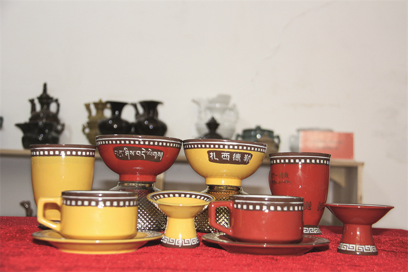藏族風(fēng)格的陶瓷茶杯和碗。白玉芬 攝