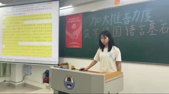 班委張一順首先闡釋普通話宣傳周誕生的深遠(yuǎn)意義,讓大家對(duì)“普通話”有更全面的理解,激發(fā)了同學(xué)們傳承與弘揚(yáng)普通話的熱情與責(zé)任。