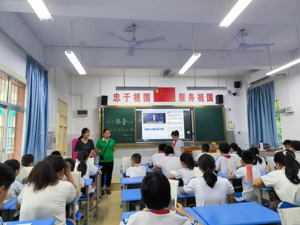 湛江市第八小學(xué)六(3)班對(duì)比播音員正音朗讀與節(jié)奏訓(xùn)練現(xiàn)場(chǎng)
