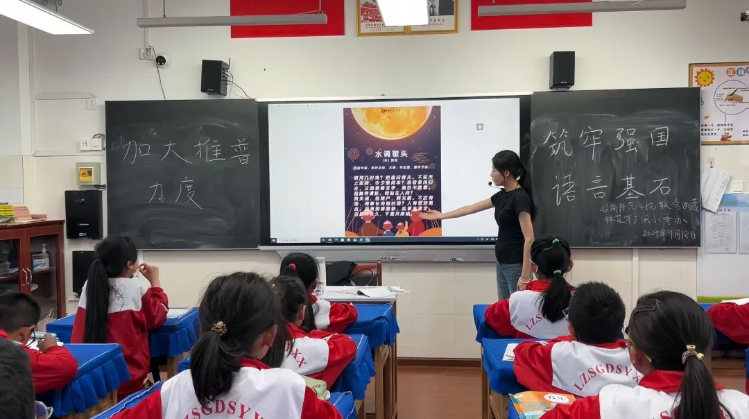 21級(jí)援藏實(shí)習(xí)生張嘉怡在林芝市實(shí)驗(yàn)小學(xué)帶領(lǐng)學(xué)生進(jìn)行古詩(shī)詞誦讀活動(dòng),促進(jìn)了藏區(qū)學(xué)生普通話水平的提升,通過(guò)《水調(diào)歌頭·明月幾時(shí)有》的師生共同誦讀,搭建起漢藏文化交流的橋梁,增進(jìn)了民族團(tuán)結(jié)與理解。