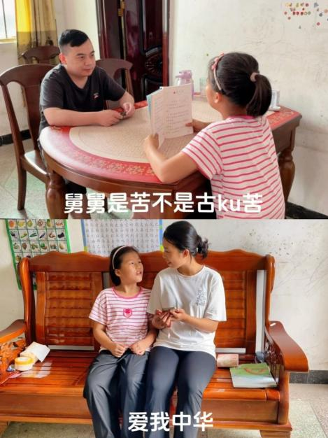 20級(jí)畢業(yè)生龍?jiān)刺煸谇暹h(yuǎn)市連州市龍坪鎮(zhèn)中心小學(xué)進(jìn)行推普創(chuàng)新實(shí)踐,指導(dǎo)學(xué)生借助手勢(shì)舞誦讀《古朗月行》,并將推普工作與家庭教育緊密結(jié)合,策劃與指導(dǎo)“普通話進(jìn)家庭”活動(dòng)。小朋友們化身為普通話小老師,糾正家長(zhǎng)的發(fā)音,與家長(zhǎng)共同學(xué)習(xí)、共同進(jìn)步,提高了家長(zhǎng)們的語(yǔ)言規(guī)范意識(shí);親子同唱《愛(ài)我中華》經(jīng)典歌曲,讓推普成為家庭文化的一部分,家庭成員之間的情感得以加深,更在孩子們心中種下了愛(ài)國(guó)愛(ài)家的種子。