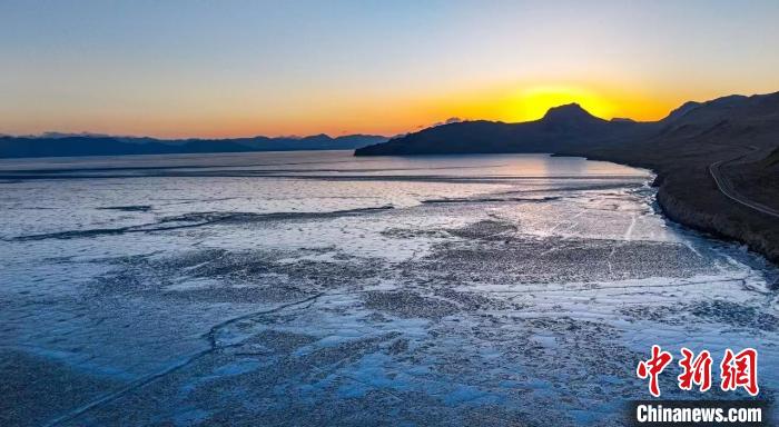 普莫雍措的湖面變成了厚厚的“天空之鏡”?!∩侥鲜新糜伟l(fā)展局 供圖