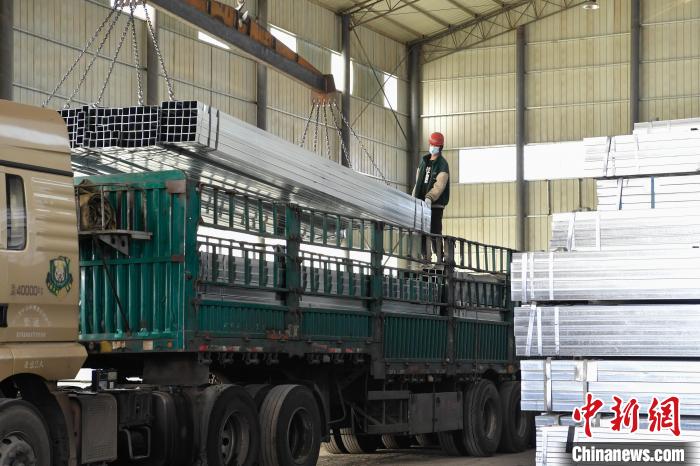 圖為物流園區(qū),工人裝卸鋼材。貢嘎來松 攝