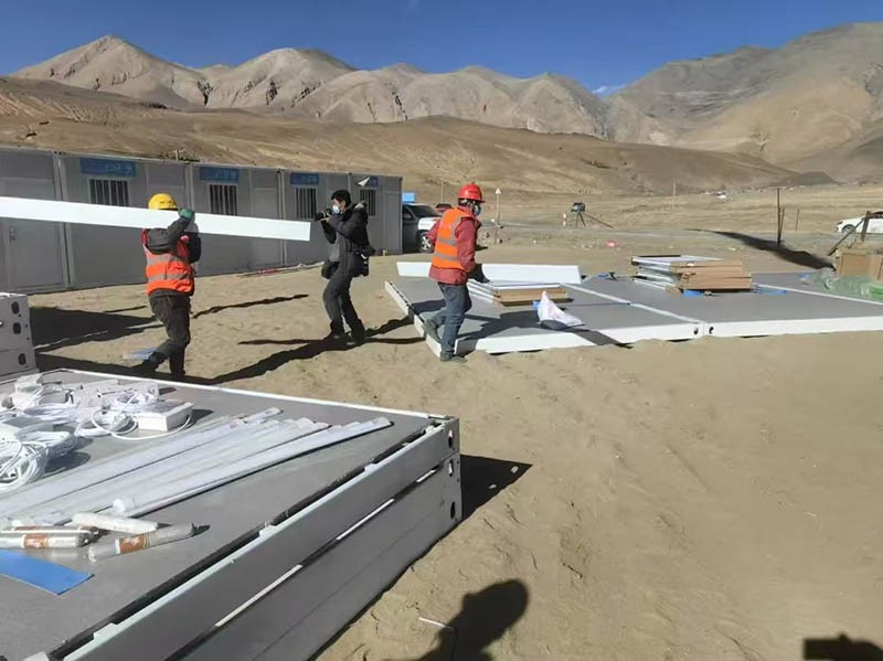 據(jù)介紹,災(zāi)區(qū)海拔高達(dá)4000多米,氣溫只有-13℃,所以參與搭建的工人,必須是之前有過高原作業(yè)經(jīng)驗(yàn)的。“集裝箱房是緊缺物資,我們?cè)琰c(diǎn)到,就能讓更多人得到幫助?!碑?dāng)?shù)刎?fù)責(zé)人說。