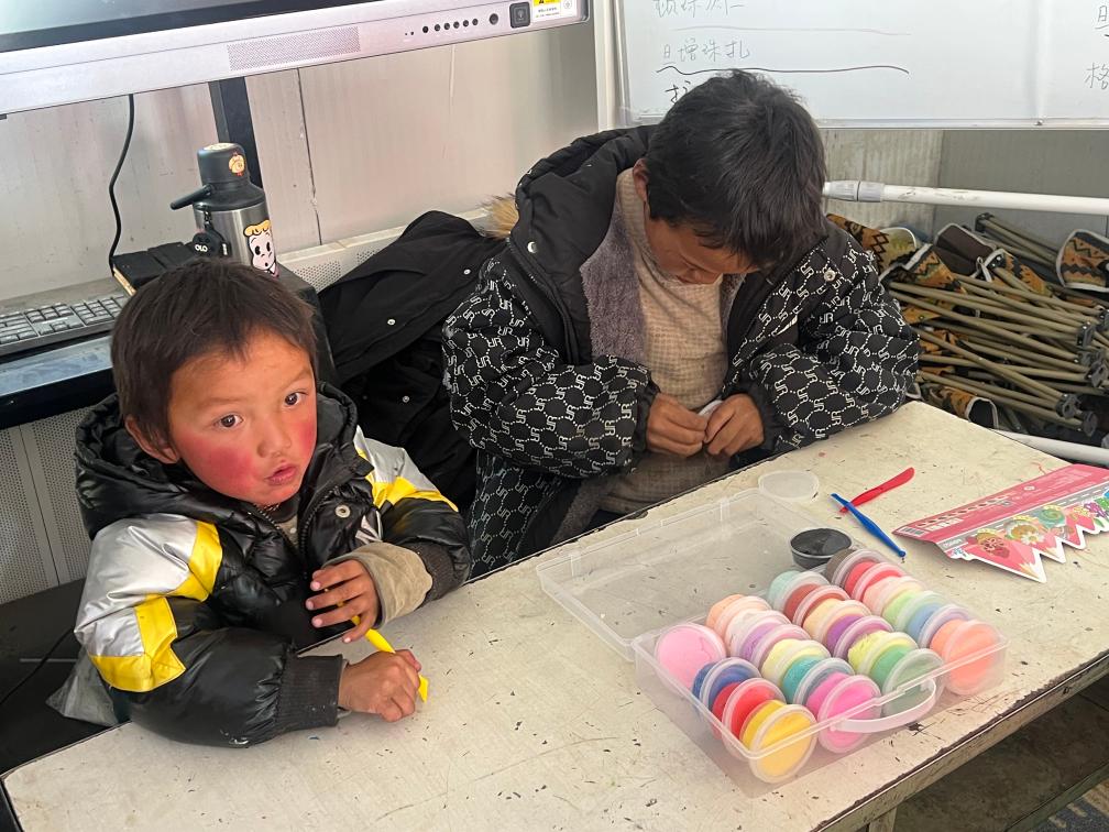孩子們?cè)凇皽嘏∥荨斌w驗(yàn)彩泥課程(1月21日攝)。新華社發(fā) 仁青永曾 攝