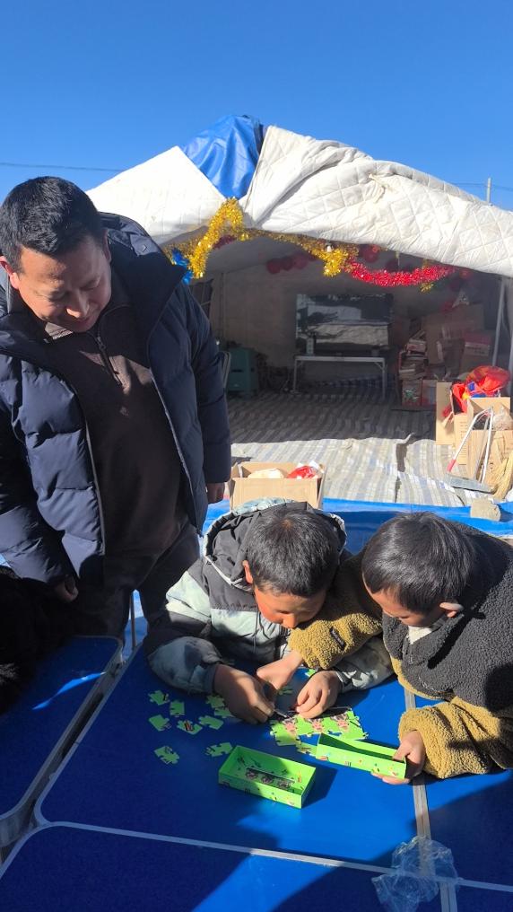 “地震發(fā)生后,必須第一時(shí)間引入專業(yè)的心理疏導(dǎo)團(tuán)隊(duì),為安置點(diǎn)的小朋友們消除地震可能帶來(lái)的心理陰影?!眻F(tuán)隊(duì)負(fù)責(zé)人亞瑪介紹,“我們團(tuán)隊(duì)中有多位持證心理咨詢師,他們?cè)谛∥葜袨楹⒆觽兲峁┬睦硎鑼?dǎo)、情緒支持等服務(wù)?!?/p>