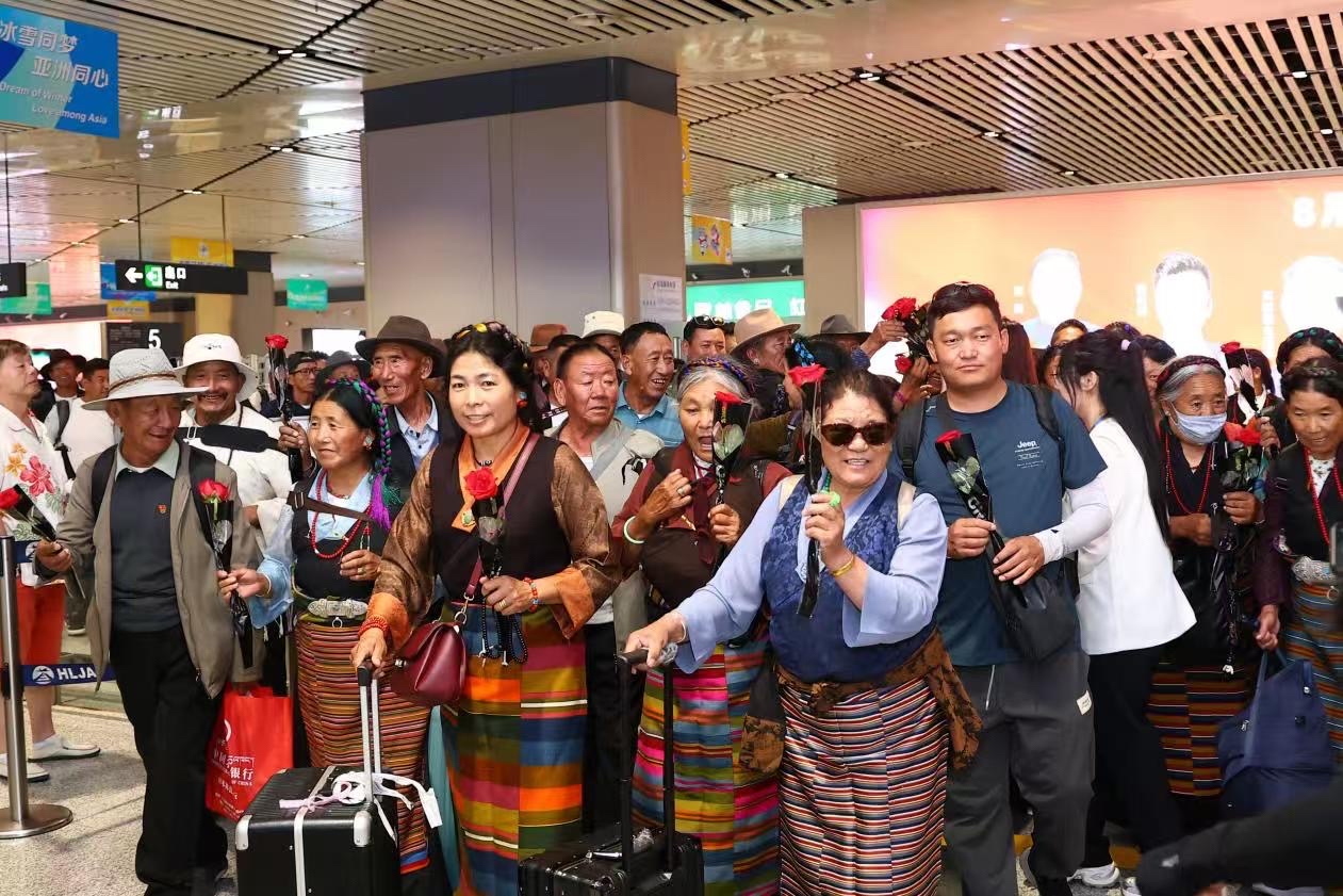 “第一次來到哈爾濱,像走進(jìn)了童話世界!”2023年12月,一架搭乘著近百名西藏游客的“龍藏號”旅游包機(jī)順利抵達(dá)哈爾濱,成為龍藏兩地常態(tài)化進(jìn)行文旅交往交流的開始。三年來,“龍藏號”旅游專列和包機(jī)雙向開行,1000余名龍江游客與藏族同胞共賞高原風(fēng)光,300余名藏族群眾走進(jìn)黑土地體驗冰雪文化?!昂谕另灐ぱ┯蚯椤蔽乃噮R演、200余場青少年交流活動,讓“五個認(rèn)同”的種子深深扎根。