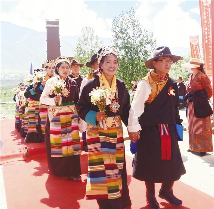 6月28日,寧墨情深·禮贊百年——愛(ài)在墨竹百對(duì)佳人集體婚典在拉薩市墨竹工卡縣甲瑪鄉(xiāng)松贊干布紀(jì)念館盛大舉行,百對(duì)佳人迎建黨百年、結(jié)百年姻緣。