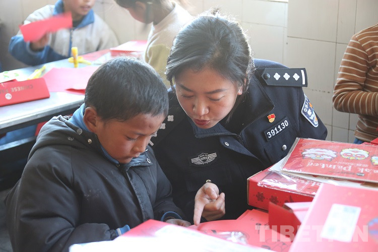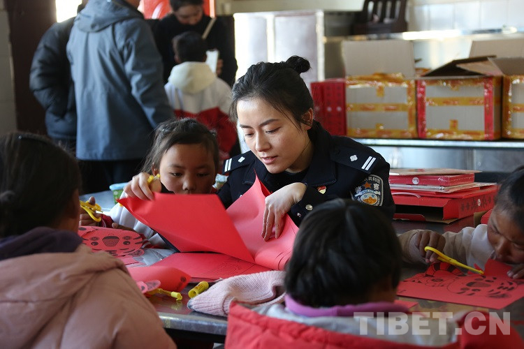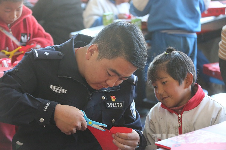 隨后,民警們?yōu)橥瑢W(xué)們發(fā)放了拉薩邊檢站和東莞邊檢站共同準(zhǔn)備的兒童手工DIY禮盒,并和同學(xué)們一起完成剪紙手工制作,共同感受著中華傳統(tǒng)文化美學(xué),體驗手工制作的樂趣?,F(xiàn)場歡聲笑語,其樂融融。