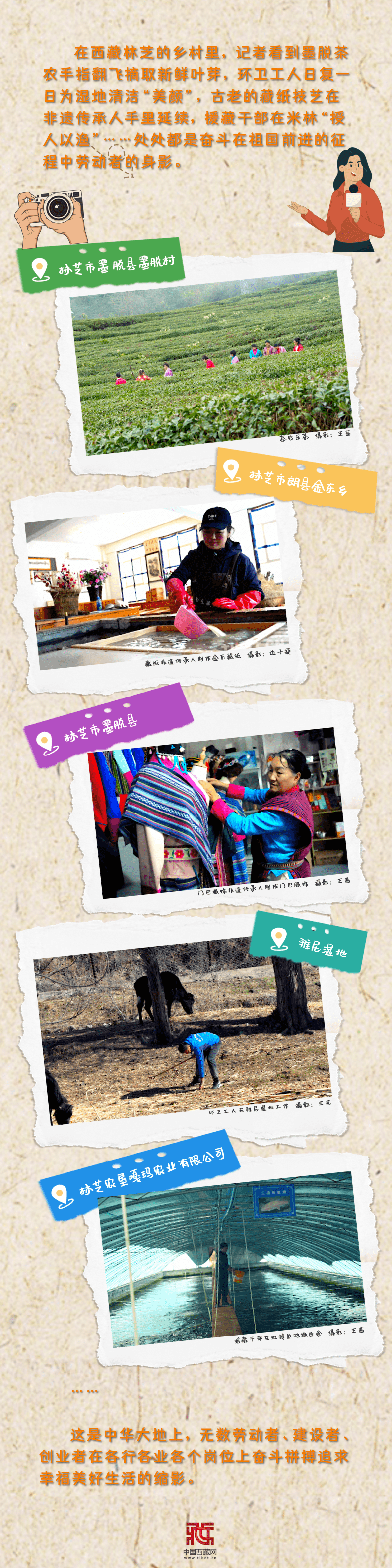 在西藏林芝的鄉(xiāng)村里,記者看到墨脫茶農(nóng)手指翻飛摘取新鮮葉芽,環(huán)衛(wèi)工人日復(fù)一日為濕地清潔“美顏”,古老的藏紙技藝在非遺傳承人手里延續(xù),援藏干部在米林“授人以漁”……處處都是奮斗在祖國前進征程中勞動者的身影。這是中華大地上,無數(shù)勞動者、建設(shè)者、創(chuàng)業(yè)者在各行各業(yè)各個崗位上奮斗拼搏追求幸福美好生活的縮影。