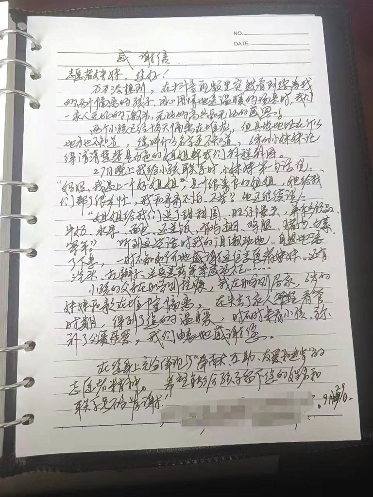 群眾寫給派出所民警的感謝信。