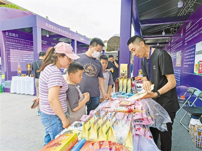 歡快的藏式歌舞,久負(fù)盛名的尼木藏香、藏紅花、牦牛肉干、墨竹小菜籽油、青稞餅干等名優(yōu)特產(chǎn)一經(jīng)亮相,便吸引了在大唐不夜城步行街游玩的市民和游客的注意。