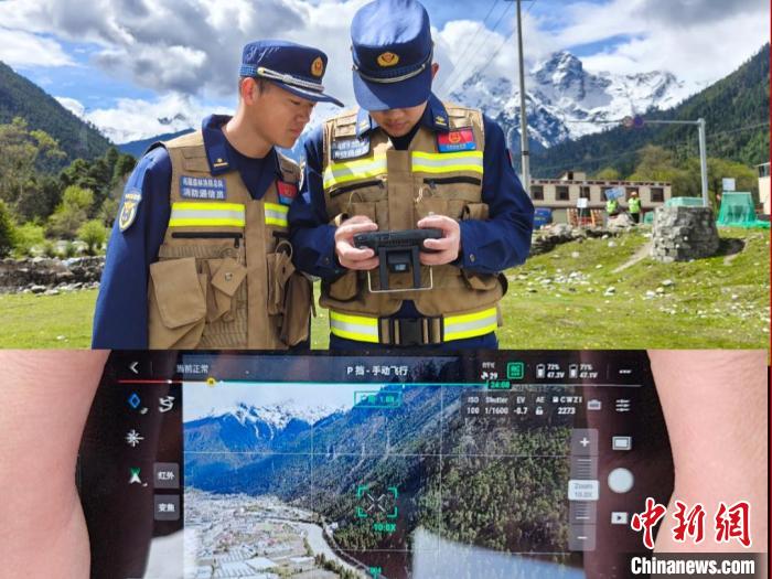 圖為消防員正在無(wú)人機(jī)操作。西藏林芝市波密縣森林消防中隊(duì)供圖