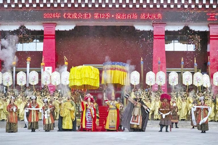 6月21日,《文成公主》迎來了2024年的第100場演出。自2013年8月首演以來,《文成公主》大型史詩劇演出累計超過2000場,累計接待觀眾游客超3000萬人次。