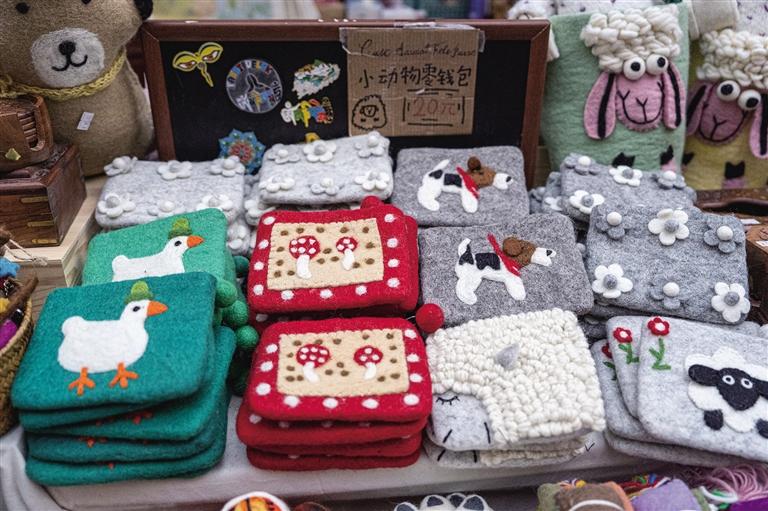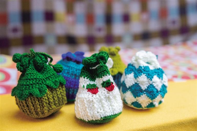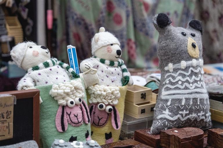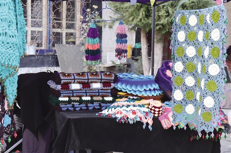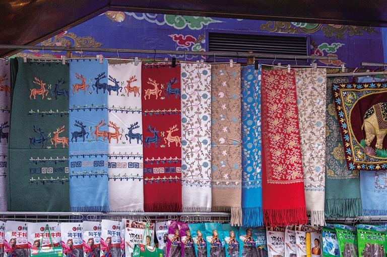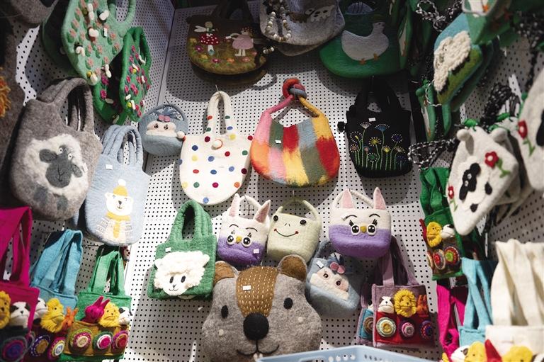 阿佳們親手鉤織的毛線茶杯套、毛線桌墊,既實(shí)用又色彩鮮明,墻上掛滿的手工編織牛毛包讓人“糾結(jié)癥”都犯了!和這座商城的建筑一樣,這里出售的美物將藏式美學(xué)展現(xiàn)得淋漓盡致。此外,這里還能淘到毛氈玩偶、毛氈風(fēng)鈴、毛茸茸的藏戲面具掛件等一些能給生活增添樂(lè)趣的“小廢物”。