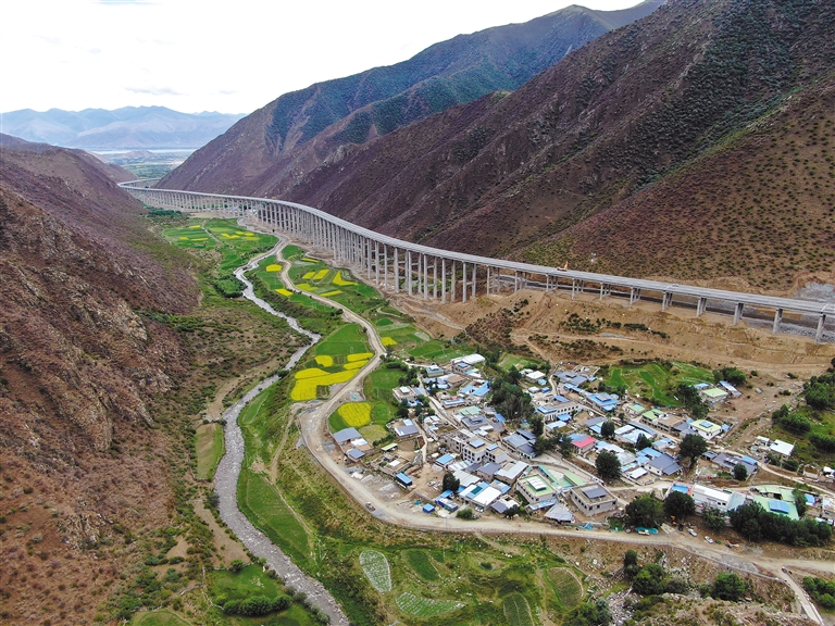 寬闊平坦的高速公路像絲帶一樣,穿過圭嘎拉深厚的屏障,把念果村和新倉村、把山南市和拉薩市拉得越來越近。