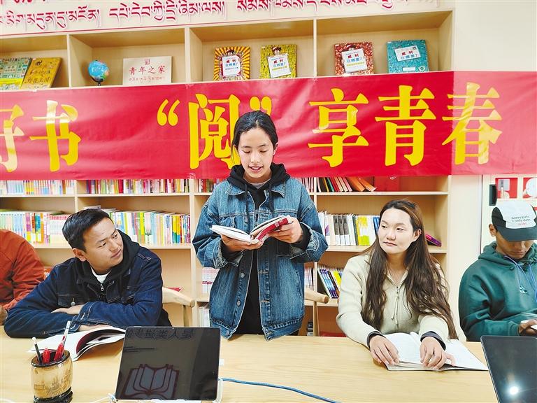 志愿者在新時(shí)代文明實(shí)踐站開展“讀書點(diǎn)亮心靈,書香潤澤人生”讀書分享會。