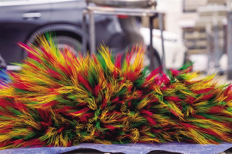 “銷(xiāo)量好的時(shí)候一天可以賣(mài)近1000元,一般的時(shí)候也有500元左右?!毖虢鹱屑?xì)檢查著剛?cè)竞蒙摹傲_薩梅朵”,她的手和臉因長(zhǎng)時(shí)間接觸顏料而沾滿(mǎn)色彩。“以前‘羅薩梅朵’的顏色并不多,只有玫紅色,上色不均勻也沒(méi)人會(huì)說(shuō)什么。但現(xiàn)在,顏色必須亮麗、均勻,這也體現(xiàn)了大家生活越來(lái)越好,生活品質(zhì)越來(lái)越高。”央金笑著說(shuō)。