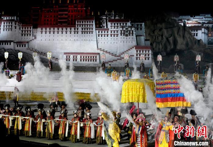 圖為《文成公主》大型實(shí)景劇第十三季演出現(xiàn)場(chǎng)。中新社記者 李林 攝