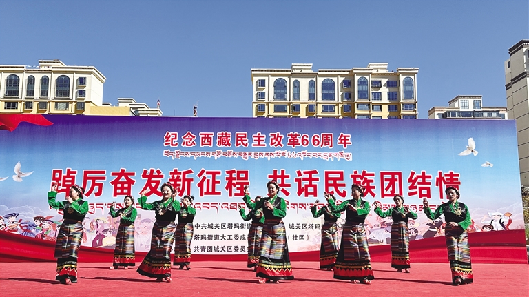 為隆重紀(jì)念西藏民主改革66周年,進(jìn)一步豐富居民群眾的精神文化生活,助力提升基層治理,3月26日,由中共拉薩市城關(guān)區(qū)塔瑪街道工作委員會(huì)、拉薩市城關(guān)區(qū)塔瑪街道辦事處主辦的紀(jì)念西藏民主改革66周年系列活動(dòng)在同心公園舉辦。據(jù)了解,此次活動(dòng)以“踔厲奮發(fā)新時(shí)代 共話(huà)民族團(tuán)結(jié)情”為主題,涵蓋文藝匯演和宣傳集市等,吸引了周邊眾多市民群眾參與。