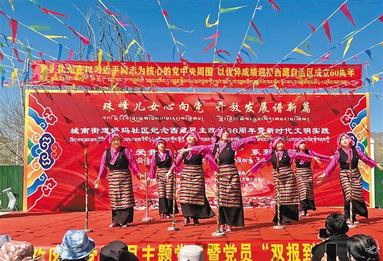3月28日,日喀則市桑珠孜區(qū)城南街道薩瑪社區(qū)舉行紀(jì)念西藏民主改革66周年暨新時(shí)代文明實(shí)踐“我愛(ài)我家 幸福日喀則”活動(dòng)演出現(xiàn)場(chǎng)。通訊員 次旦玉珍 攝