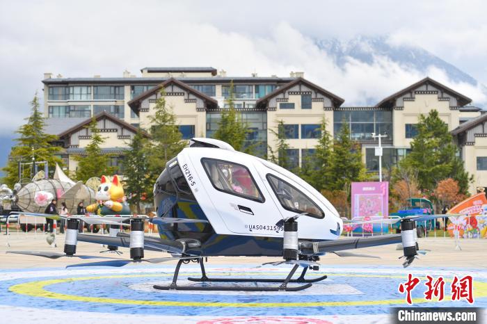 4月5日,西藏林芝第二十二屆桃花旅游文化節(jié)上,億航智能桃花載人無人機E-VTOL首次亮相海拔3000米高度,并成功首飛。首飛現(xiàn)場,無人機緩緩升空,引得市民、游客紛紛駐足仰望,降落之后,大家圍攏過來,近距離參觀體驗并拍照留念。據(jù)悉,億航智能已在國內(nèi)合肥、杭州等地開展低空文旅項目,在全球19個國家,完成65000架次安全飛行。圖為載人無人機E-VTOL準備進行首次飛行。貢確 攝