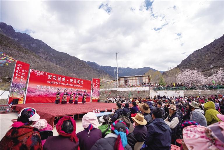 芒康縣覺龍村第七屆桃花節(jié)開幕式現(xiàn)場。記者 阿旺尼瑪 攝