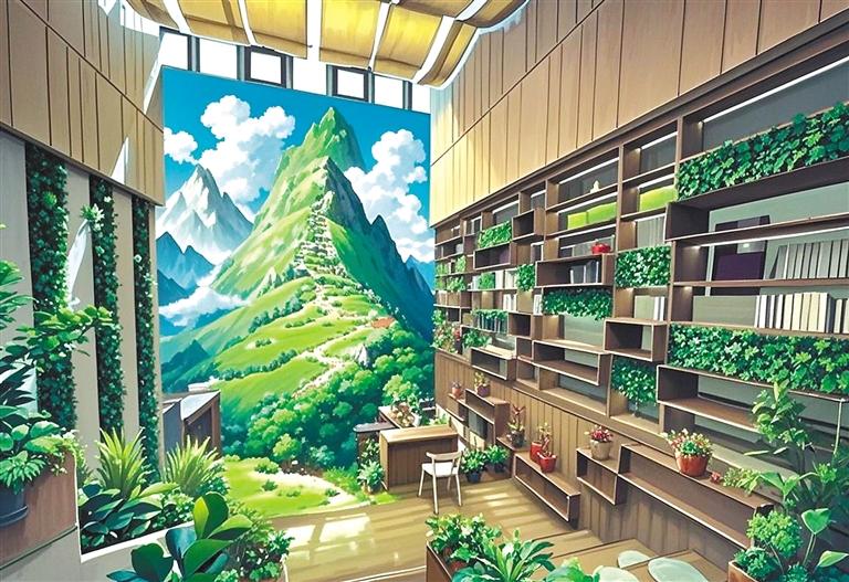 “我就是想以動畫風(fēng)格給大家展示不一樣的堆龍。”旦增拉姆說。只見她又將照片導(dǎo)入AI圖片生成軟件內(nèi),AI自動識別圖像元素——經(jīng)幡的布料特性、水流的物理參數(shù)、建筑材質(zhì)的反光數(shù)據(jù)。輕點“生成”按鈕,1分23秒后,一張動畫風(fēng)格的Shadada CoffeeX新型公共文化空間的圖片便呈現(xiàn)在眼前。重點不是技術(shù),是審美把關(guān),旦增拉姆指著屏幕上的失敗案例:“AI把青稞田處理成糖果色卡通,把圖書館渲染成賽博朋克風(fēng)格。我每天要調(diào)整無數(shù)次參數(shù),就像教AI理解什么是藏地美學(xué)?!彼米瞵F(xiàn)代化的數(shù)字工具,“描繪”著堆龍德慶區(qū)新的光影詩篇。