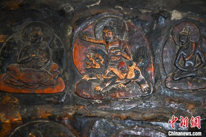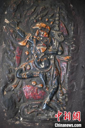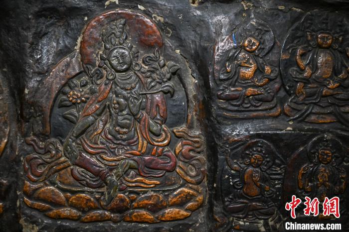 4月27日,記者探訪了當(dāng)雄縣貢堂鄉(xiāng)沖嘎爾村康馬寺的瑪尼拉康。瑪尼拉康是該寺除修行洞之外的早期宗教活動場所,也是寺院里最古老的建筑。這里保存著令人驚嘆的石刻造像墻,這些石刻距今已有三百年歷史?,斈崂低庥^普通,但其室內(nèi)六面墻上整齊地貼滿了浮雕石刻板,共計1213塊(僅一塊缺失)。石刻內(nèi)容豐富,涵蓋了藏傳佛教各宗各派的本尊、祖師、佛母菩薩等,造型多姿多樣,線條清晰流暢。這處石刻造像墻對于研究西藏傳統(tǒng)雕刻、藏傳佛教以及歷史具有重大意義。中新社記者 貢嘎來松 攝
