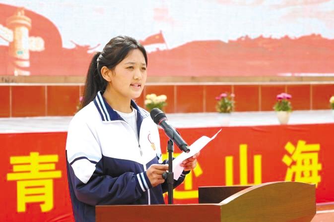 圖為共青團昌都市委聯(lián)合市教育局在昌都市第一高級中學舉辦“紅色昌都 振興奮進”五四青年節(jié)主題團日活動。圖為在入團儀式上,學生代表作發(fā)言。記者 平措郎加 通訊員 擁金卓嘎 攝