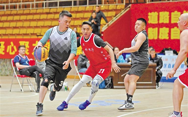 為激勵廣大青年繼承和發(fā)揚五四精神,推動健康西藏建設(shè),區(qū)直機關(guān)工委聯(lián)合自治區(qū)體育局、團區(qū)委舉辦區(qū)直單位第八屆全民健身運動會。圖為三人制籃球賽。記者 唐斌 攝