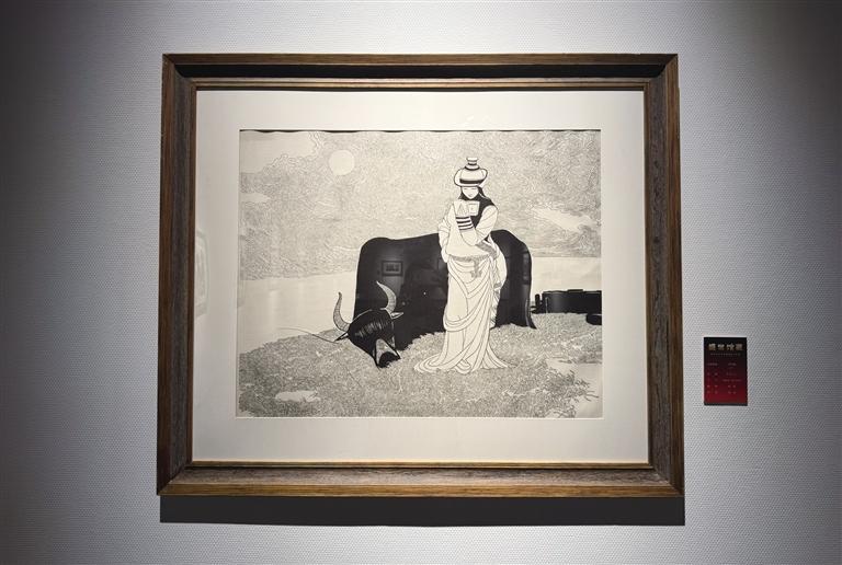 步入展廳,經(jīng)典版畫與“藏族祥巴”作品交相輝映。作為展覽的重頭戲,“藏族祥巴”融合傳統(tǒng)繪畫與版畫技法,色彩濃烈、紋樣繁復(fù),生動展現(xiàn)藏族民俗風(fēng)情與精神內(nèi)涵;經(jīng)典版畫則以多元風(fēng)格,記錄時代變遷與地域特色,既有細(xì)膩寫實的生活圖景,也有充滿張力的抽象表達(dá)。